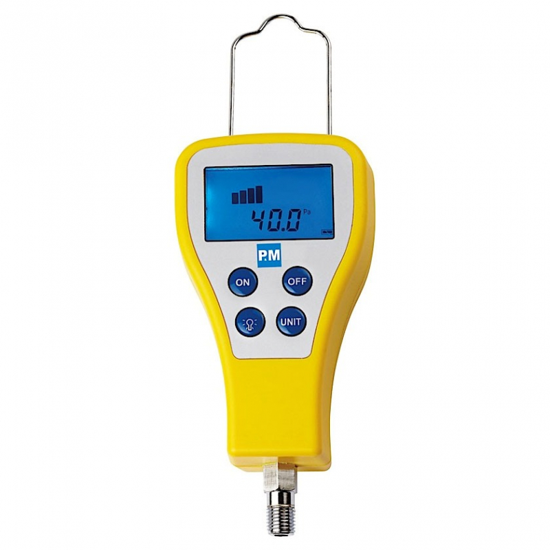 ‧ Measures Vacuum in Pa, Microns, mBar, mmHg, and mTorr ‧ Auto off after 30 minutes to conserve battery. ‧ Vacuum Level Bar Graph. ‧ Low Battery indicator. ‧ High visibility backlit LCD display. ‧ CE Certification.
